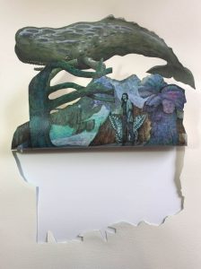 Una serie di olii su tela, di grande formato, completano il percorso. Una pittura oggettuale quella di Cuoghi fatta anche di collage e carta intagliata, dove una narrazione apparentemente realistica, fa sognare, immaginare… per perdersi nell’infinito. Dice infatti l’artista “Mi piace ricreare un paesaggio effimero che dura il “click” di uno scatto fotografico e prolungare con la