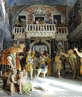 Ecce Homo, nella cappella XXXIIIL'immagine della verità – La ricetta è semplice: concentrare in un fine settimana estivo un vasto programma di iniziative, sotto tutte le forme di coinvolgimento artistico, per attualizzare il messaggio del Sacro Monte; dentro un Sacro Monte, nel suo perimetro, riappropriandosi della sua storia. Una via che anche da queste parti si conosce e che in qualche modo è stata istituzionalizzata nel corso delle manifestazione per il Quattrocentesimo della nostra Via Sacra, spalmate su più stagioni e pure in diversi periodi dell'anno. A Varallo, altra punta di diamante della corona dei teatri montani prealpini, si stanno invece accendendo i riflettori su Imago veritatis, l'arte come via spirituale, un festival di nuovo conio, che porrà la località piemontese al centro dell'interesse nel week-end, tra il 13 e il 15 giugno. "Rivivere lo spettacolo dell'arte sacra come un'esperienza spirituale, quale è sempre stata nella tradizione cristiana – è promesso dagli organizzatori – prima della secolarizzazione, se pure con diverse modalità a seconda dei periodi storici e dei contesti". Un moto a luogo, implicito nel titolo, che prelude a questa come ad un prima di edizioni futuri.