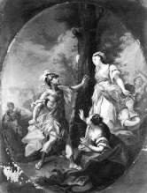 Rinaldo pentitoIl Falso veneziano – Due tele ovali, di dimensioni pressocchè identiche sono conservate in Villa Cagnola a Gazzada. Sono opera di Nicola Bertuzzi, detto l'Anconitano, figlio di Giovanni Battista e nato ad Ancona verso la metà del secondo decennio del Settecento. Giorgio Fossaluzza, autore del contributo storico pubblicato sull'ultimo numero de "La Gazzada", passa in rassegna le due tele di Villa Cagnola, commentando lo status quaestionis, le precedenti pubblicazioni e ricerche. Poi si passa all'analisi iconografica e al rimando con fonti letterarie, sacre, storiche. Lo stato conservativo dei due dipinti è buono, tenendo conto che non sono stati mai restaurati e rifoderati. Purtroppo, scarsi sono i dati storici sulla committenza e sulla provenienza: solo nel 1965 un contributo storico di R. P. Ciardi li rende noti, assegnandoli ad un pittore veneto del quarto decennio del Settecento. Notevole e decisamente marcata è l'impronta tiepolesca, tanto nella composizione quanto nel trattamento luministico dei panneggi dei personaggi e delle vedute di paesaggio sullo sfondo. Anche il disegno risulta più flessuoso e la materia cromatica schiarita e luminosa. In tal modo, l'autore del saggio critico perviene alla conclusione che i due ovali debbono attribuirsi ad un artista che può essere qualificato come