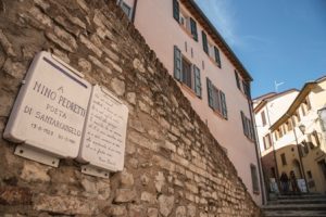 Contrariamente a chi nasceva negli anni ’20 in quel di Santacangelo, dove il parlare quotidiano viveva solo di cadenze dialettali, “La prima lingua per Nino, invece, è stato l’italiano. Il babbo e la mamma erano due intellettuali, la mamma era maestra…il padre era un appassionato di storia locale, scriveva libri e articoli…e anche lui sia in casa che fuori parlava in italiano”, chiarisce Baldini.