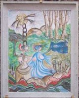 Affresco di RunoPartiti i restauri degli affreschi – Per farli rivivere è intervenuta la prestigiosa Accademia delle Belle Arti di Brera. Dei sessantotto affreschi che adornano il centro storico di Runo, frazione di Dumenza, quattordici sono già ritornati all'antico splendore. Un lavoro di rimessa a nuovo fortemente voluto dall'Amministrazione Comunale che, con questa opera, vuol ridar luce a un borgo offuscato dai segni del tempo. L'investimento messo in campo si aggira intorno ai 5-10 mila euro all'anno; a carico del Comune solo le spese per i materiali utilizzati per la rimessa a nuovo, l'intero lavoro è stato e verrà svolto dagli allievi del corso di restauro dell'Accademia.