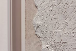 Nella personale che si concluderà sabato 20 ottobre si possono ammirare segni e grafemi, tipici del tratto distintivo dell’artista, che realizza su differenti supporti come il piombo, cemento, vecchi fogli di manoscritti e pagine di quaderni ingiallite.