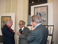 Sangregorio e il Sindaco di SommaSensibilità mai mutata – E' stata inaugurata domenica 25 maggio a Somma Lombardo la mostra personale di Arsenio De Boni, veterano artista di Sesto Calende dove da oltre trent'anni trasmette ai suoi allievi del Laboratorio di arti figurative la passione e lo studio dell'arte e della pittura. Proprio uno dei suoi allievi più famosi, Vitaliano Forlani, ha presentato le circa quaranta opere esposte descrivendo attraverso esse il percorso ampio e variegato del maestro: dalle nature morte ai nudi femminili e ai paesaggi, dagli oli ai pastelli, dall'encausto ai più recenti carboncini. "Una vitalità sorprendente e mai sopita, nonostante siano prossime le 87 candeline – specifica Vitaliano Forlani – quella che si evince dalle opere di De Boni; una conferma che la passione e la sensibilità è sempre la stessa da molti anni, mai mutata nel tempo".
