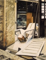 Giancarlo OssolaDalla civiltà contadina alle fabbriche – Le motivazioni di Ossola affondano nella sua giovinezza quando frequentava Castel Cabiaglio e partecipava della vita contadina dei luoghi, di cui rifaceva già figure e mestieri. Poi arriva la maturità: "Arrivai a concentrarmi su due temi complementari: gli interni di fabbrica e le città" – continua l'artista, "gli interni come bozzoli per viverci, in cui gli oggetti si caricassero di valenze psichiche, tra claustrofobia e claustrofilia. Gli esterni, le architetture, erano invece più legate, ad un discorso generazionale, legati ad un certo clima di quegli anni".