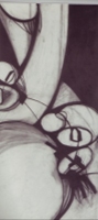 La materia a tratti – Violenti, pesanti e concreti sono anche i disegni di Paola; spesso realizzati a corredo della scultura. Segni, solchi, tratti marcati, ma che, nonostante la leggerezza del foglio, riportano alla consistenza delle sculture che richiamano. Dettagli e curve che dialogano, a volte così serrate che ne è difficile la penetrazione.