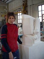 Paola RavasioL'essere grandi – L'espressività, l'energia, la passione dell'arte scaturisce quando è frutto di uno scavo interiore non sempre facile da compiere. Quando di fronte ad un blocco solido, rigido, impenetrabile di materia, inizia a prendere forma qualcosa che si sente dentro, un'esigenza di raccontare e di raccontarsi. Paola Ravasio lo fa scolpendo, scavando, lisciando, modellando. Giovane, ma ferma sulle sue convinzioni, solida come la materia che lavora. La giovane sta camminando giorno dopo giorno sulla strada della scultura e si arricchisce minuto dopo minuto perchè sa guardare non solo sè stessa ed il suo lavoro, ma il mondo che la circonda. Ecco allora che le sue opere diventano l'espressione viva di questo mondo reale, in cui l'uomo è protagonista.