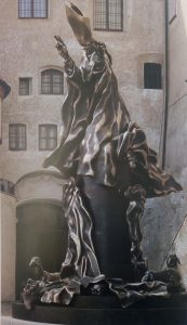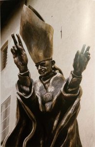 La statua di Bodini incarna l’uomo fragile – anziano, malato, segnato da tante cose nel corpo e nello spirito – ma intimamente forte, convinto, che vuole arrivare fino alla fine. C’è il pensiero alla Morte. Il Pontefice dice al Signore “voglio vederti”, perché con la morte la Fede e la Speranza si realizzano nell’incontro con Lui. E’ una grande testimonianza: io vi ho voluto bene e, quando non ci sarò più, vogliatevi bene tra di voi.
