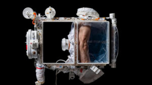 Elementi solo in apparenza familiari – simili a resti di missioni spaziali, strumenti dimenticati o frammenti corporei – restano ambigui, resistendo alla decodifica. L’opera richiede così un coinvolgimento attivo da parte dello spettatore, che è chiamato a completare il senso con un proprio gesto immaginativo.