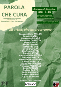 L’appuntamento in Tv con Luisa Cozzi che parla di questa iniziativa è per le 19,45, su Rete55 con Poetando, giovedì 28 novembre; mentre l’evento in presenza si svolgerà domenica 1 dicembre dalle 15,45 “Parola che cura. In memoria di Padre Elia Spezzano e di Antonia Pozzi”, Via S. Arialdo 102, Chiaravalle Milanese- ingresso dalla portineria dei monaci –
