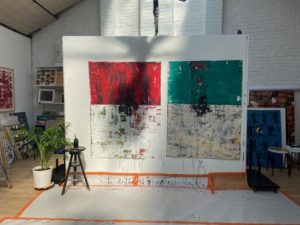 Costretto alla clausura causa Covid, Pepermas (1947 vive e lavora a Bruxelles) ha ripreso alcuni suoi lavori eseguiti negli anni ’80 dove aveva espresso su tela la sua passione per il rock’n’roll.