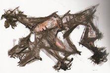 Un disegno di FossaE ricordavo ancora le irripetibili esposizioni di Palazzo Reale, ad illuminare occhi e menti di chi sapeva guardare: quella di Picasso con Guernica nella sala delle Cariatidi mutilata dai bombardamenti, quelle di Van Gogh e di Modigliani, e poi l'officina operosa di Brera e del suo intorno di studi e gallerie, fra Solferino e Garibaldi. Erano anche gli anni in cui si presentavano sulla scena artistica artisti come Ceretti, Francese, Banchieri, Guerreschi, Cavaliere, Romagnoni, Bodini… giovani anche loro come Fossa, giovani di accese speranze e di begli ideali, che seppero imprimere un segno – un segno energicamente moderno – all'arte italiana. Non solo all'arte, giacché a tutti loro importava avere in primo piano l'uomo con le sue lotte, le sue ricerche, le sue contraddizioni, la sua forza, le sue debolezze, le sue vittorie, le sue sconfitte.