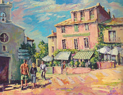 Attorno al Lago di Varese si addensa una folta schiera di artisti; complice forse la dolcezza e bellezza del paesaggio, i colori teneri e, d'inver-no, brumosi, la ricchezza d'acque e le colline prealpine incombenti…Alberto Nicora ha lo studio a Bobbiate e gli artisti del lago, anche quelli famosi, come Guttuso e Pedretti, li ha incontrati e conosciuti tutti. Il suo maestro è stato uno di loro: lo scultore Angelo Frattini, che lo ha accompagnato per un tratto sul cammino dell'arte. Ora Alberto Nicora apre tutte le mattine la porta del suo studio alle 7,30 e comincia il suo lavoro: schizzi tracciati in loco, percorrendo le vie del paese, seduto al tavolo di un caffè, aggirandosi tra le bancarelle del mercato, hanno fermato sul suo taccuino scorci di vie e piazze, visi, persone colte in un attimo della loro giornata. Su questi bozzetti l'Artista lavora liberamente, con colori vivi ed energici, con pennellate corpose, materiche e con la sicurezza di chi tanto tempo e lavoro ha dedicato alla passione artistica e che, anche in vacanza, in viaggio, non dimentica mai a casa il taccuino degli appunti, degli schizzi.Ne nascono lavori di grande vivacità e immediatezza, che fanno pensare all'impressionismo; ma i colori insoliti, accostati con pennellate dense e frantumate, la luce intensa, meridiana ci portano nell'ambito dell'espressionismo, di quella pittura che nasce soprattutto dall'anima dell'artista, dalla sua capacità di ricreare in modo sog-gettivo la realtà: Alberto Nicora osserva la varia umanità che lo attornia, vive con lei la semplice vita di tutti i giorni; ma ne svela, nella fitta trama di gesti, di sguardi, nel via vai incessante della strada, le profonde passioni che la agitano, il dramma del vivere ammantato di quotidiana ripetitività, come solo la penetrante finezza dell'artista sa fare.