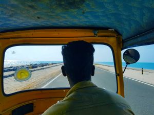E’ un tuc-tuc traballante tenuto insieme col fil di ferro che ci trasporta sulla strada sconnessa, tratteggiando la costa per ricondurci alla realtà.