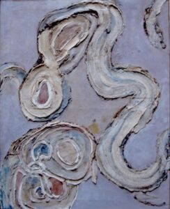 Gli anni Cinquanta sono contraddistinti dall’incontro che Gallizio ebbe con l’artista danese Asger Jorn (Vejrum 1914-Aarhus 1973) anch’egli ricercatore archeologico e fra le figure di spicco del gruppo CoBra e del Movimento per una Bauhaus immaginistica.