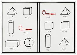 La mostra prende avvio dalle “Poesie industriali” per arrivare al progetto del Musée d’Art Moderne, Department des Aigles”, Museo fittizio di cui si autoproclamò direttore e curatore e dove tra le altre provocazioni appare la scritta “enfants non admis”. Non mancano riferimenti ad artisti come Mallarmé e Magritte, per Broodthaers vero modello di riferimento, che lo ha portato a creare “Livre Tableau ou Pipes et formes”, nella fattispecie l’icona della pipa acquista pari dignità geometrica nei confronti di forme quali il cubo, la piramide e il cilindro.