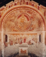 Facciata edificioCampagna 2008 – "Per quanto riguarda l'interno della chiesa, s'intende consolidare lo strato pittorico della parte alta della navata e dell'abside", specifica Umberto Brianzoni di Arkè. "L'intera decorazione pittorica esistente è quella che si vede, da questo punto di vista non c'è più nulla da verificare" – descrive Elisabetta Magnani, architetto alla direzione del cantiere – "si vuole inoltre ridare visibilità alle croci borromaiche nella parte bassa della navata, in ricordo della consacrazione iniziale della chiesa" – continua l'architetto – "siamo già intervenuti sulla pavimentazione e sui vespai sottostanti. L'intenzione è quella di riportare alla luce anche il rosone della facciata, nella posizione in cui oggi si apre una finestra di forma rettangolare. E' già stata consolidata anche l'impiantistica di acqua, gas e luce".