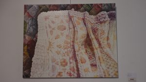 «le trame sono sempre una mia prerogativa. Per cui con la traccia che il premio farioli quest’anno invitava ad esplorare, mi sentivo proprio portato e devo dire che questo dipinto l’ho iniziato ancora prima che la traccia uscisse e si sposava, proprio andava benissimo con la traccia».