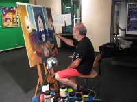 "La terza esposizione che si sviluppa nelle cinque sale di Villa Borghi a Biandronno si chiama Foresta e include undici dipinti. Sono opere che presentano degli alberi molto particolari, alberi fantastici che nascono dalla mia mostra dello scorso anno, Paesaggi in movimento. Si tratta di una mostra composta da 11 installazioni formate dalla tela, da un teatrino di carta Giapponese (il khamishibai) e da un libro. Un percorso artistico che nascendo da un'immagine si concretezza in un racconto teatrale, che si svolge nel teatrino dove c'è un operatore che sfila le immagini che io ho preparato sviluppando l'immagine di partenza e un attore che racconta, oppure legge. Il terzo elemento dell'installazione è infatti un libro illustrato.