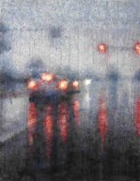 Sono visioni metropolitane in cui lo sgocciolamento del colore sulla tela va a sovrapporsi alla verticalità degli edifici in una sinfonia dai ritmi lenti. Ama le ore di mezzo, quelle che precedono l'alba o che seguono il tramonto, le ore dense di ombre o vibrazioni in cui tutto può succedere.