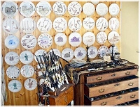 La sala delle ceramicheUna casa-museo – Il Museo della Pipa di Gavirate è ospitato all'interno di un edificio che ha già di per sé un valore storico nel suo essere una tipica casa lombarda della seconda metà del XIX secolo. Nel suo insieme, il museo contiene circa dieci ambienti con esposizione di strumenti e oggetti artistici e manufatti di ogni tipo in bella mostra in bacheche, vetrine, armadi ed espositori. Due grandi porticati chiusi, al piano terra e al piano superiore, inoltre, ospitano vecchi torni e macchinari per la lavorazione artigianale e artistica delle pipe: un vero e proprio "percorso nella storia". Segue la sala dedicata alle ceramiche e ai manufatti dipinti a mano da Paronelli, con tema iconografico relativo alla storia della pipa e al mondo dei tabacchi. Bisogna ammetterlo. L'attività artigianale e artistica del Paronelli spazia dalla produzione di pipe, delle quali egli stesso curò disegno progettuale, sbozzatura e rifinitura, all'intaglio del legno, alla modellatura di ceramica e terracotta, alla pittura.