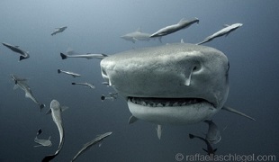 "L'acqua per me è vita, gli squali sono la mia energia. Per me, soprattutto, lo squalo Tigre rappresenta l'essenza della forza, dell'equilibrio e della fragilità tutto in un mix di straordinaria bellezza e imponenza. Adoro immergermi con gli squali e fotografarli. Per me fotografare sott'acqua e arte. Quando fotografo in acqua mi lascio guidare dalla passione e dai sentimenti, solo così riesco a cogliere l'attimo e renderlo artistico". Parola di Raffaella Schlegel, fotografa subacquea di fama mondiale, partita dalla sua Legnano per seguire il richiamo del mare. Nell'intervista video ci ha raccontato della sua vita, dei suoi viaggi, di come è nata ed ha coltivata la sua passione, soprattutto per gli squali, che la maggior parte di noi – a torto – considera solo dei temibili predatori, senza saperne ammirare la straordinaria bellezza e complessità, che traspare ammirando gli scatti, esposti nella sede della Famiglia Legnanese fino al 2 novembre.