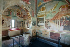 Forse nessun ciclo di affreschi in Lombardia, se non la Camera degli Sposi di Mantegna, ha la stessa solennità, la stessa compiuta classicità, di questo ciclo di Masolino racchiuso nel battistero di Castiglione Olona, una delle gemme più preziose della pittura italiana del primo Rinascimento.È possibile che, per precisa volontà del cardinale Branda Castiglioni, il ciclo delle Storie del Battista che riveste le pareti interne di quella che fungeva da cappella privata, avesse come modello di riferimento la decorazione della navata di S. Giovanni in Laterano, realizzata da Gentile da Fabriano e completata dal Pisanello a celebrazione del ritorno del papa nella città eterna.