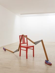 Per la loro disarticolata composizione si affida ad oggetti d’uso quotidiano come utensili di varia natura, bottiglie, calzature di differente foggia e frammenti di mobili, al fine di dare vita a personaggi distinti da specifiche personalità; a volte sospesi a mezz’aria, altre volte ibridamente allungati sulla spalliera di una sedia o ribaltati in silente connubio, rispetto alle loro naturali funzioni.