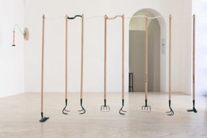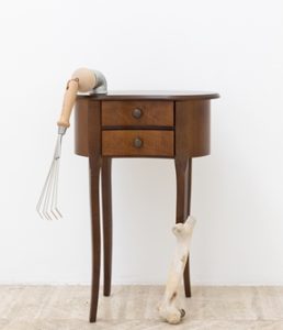 Altresì le forme di mobili mutilati vedono compensate le loro recisioni da piccoli rastrelli e da frammenti ossei tali dare vita ad una surreale condizione metaforico-formale.