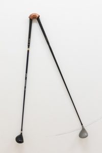 Altro scenario: due mazze da golf, appositamente congiunte, mimano la cadenza di un passo marziale.