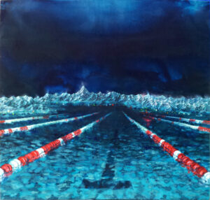 progressivamente dalla dimensione figurativa, perviene ad un’astrazione che si spinge fino al limite dell’informale, anche se nei suoi spesso immensi quadri sempre si scorge la veduta da cui lui trae ispirazione: un vasto scenario naturalistico che da sfondo diventa il vero soggetto latente del quadro. E c’è anche un’artista che usa la fotografia in chiave pittorica, Maura Banfo, autrice che punta il suo obbiettivo di notte sulla superficie del mare, dove la luce di un faro si riflette e le onde ne evidenziando i riflessi sulle impercettibili increspature dell’acqua, Sorella Acqua, elemento primigenio del mondo”.