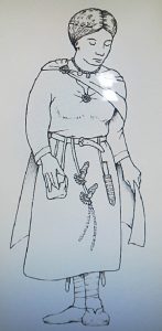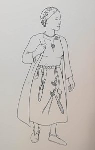 periodi più freddi si porta il mantello, chiuso sulla spalla destra con una o più fibule. Non si disdegna anche l’uso di pellicce: in gran voga, sia tra i nobili sia tra le classi inferiori, il corpetto senza maniche, molto pratico da utilizzare, specie a cavallo o nell’esecuzione di lavori che richiedono una certa agilità di movimento.