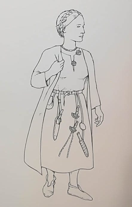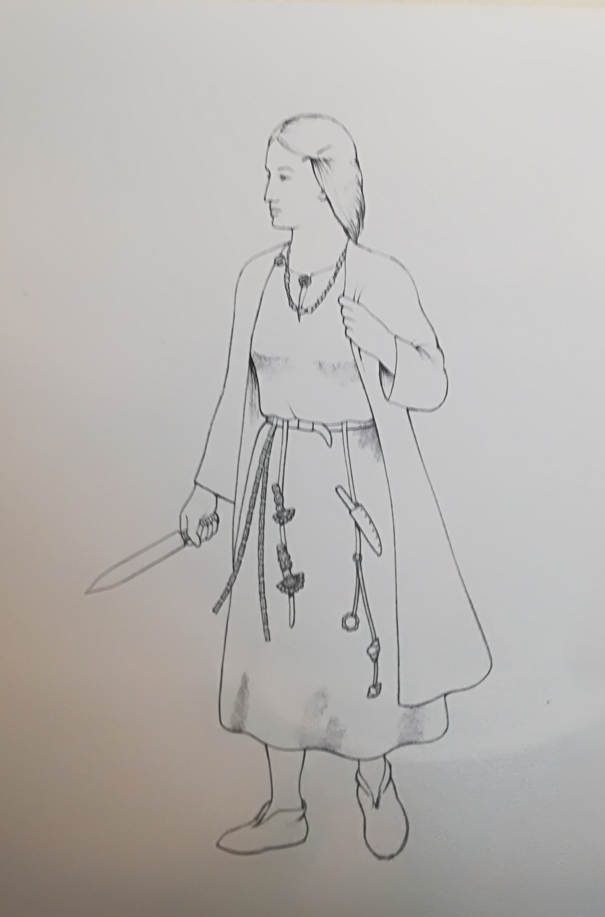 Le donne non indossano le “bracae”, ma tuniche che arrivano quasi fino ai piedi; il mantello, invece di essere fissato alla spalla, viene chiuso sopra il petto, appena sotto il collo, sempre da fibule, spesso di raffinatissima fattura.