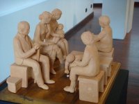 Un'altra opera in mostrarappresentare uno sdoppiamento, l'uomo accanto a lui, che va nel verso giusto, è la stessa persona: volevo rappresentare il dubbio e il pensiero di scappare che si può avere quando non si ha voglia o si è obbligati a fare qualcosa. Oppure vi sono due personaggi che sono in fila insieme ma che parlano al telefono, e quindi non comunicano tra di loro ma con qualcun altro; in fondo vi sono un padre e un figlio, ho rappresentato anche due cinesi e uno stilista che si accompagna ad una modella anoressica. Ho preso spunto dalla televisione, dai giornali, e da tutto ciò che mi stimolava e mi creava qualche sensazione. Ciò che mi interessa è rappresentare la vita quotidiana con tutto quello che c'è dentro: passioni e problemi".