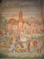 Gli artisti che vengon dal nord – E Andrea Spiriti, che introduce il saggio della studiosa, precisa: "la collocazione dell'edificio al 1555/1561 ben collima con l'attribuzione degli affreschi, che formulo in questa sede, ad Hans Bocksberger il Vecchio, autore nel 1539 del ciclo nella torre del Falcone al castello del Buonconsiglio di Trento".