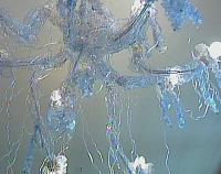 Il concetto delle opere – "Quello che voglio comunicare è che, anche dagli scarti è possibile creare cose belle. Prendiamo la plastica, le bottiglie dell'acqua che, lavorate e inserite in un contesto armonioso, non hanno nulla da invidiare ad esempio agli imponenti lampadari in cristallo. In ogni mio lavoro è fondamentale l'unicità del pezzo: tutte le parti di cui si compone, sono diverse l'una dall'altra. La forma, il colore e le dimensioni. Mi piace assemblare materiali di vario tipo per ottenere particolari effetti e giochi di trasparenze. Vetro, plastica, lampadine bruciate e fili di lana, recuperati da vecchi maglioni, qui si trasformano in impensabili pendenti per lampadari". Raffaella Bandera è artista, designer e artigiano e in tutte le sue creazioni cura non solo l'idea e l'aspetto estetico, ma anche la funzione e l'uso che avrà l'oggetto.