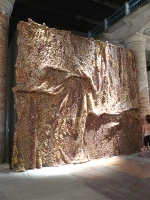 L'opera di El AnatsuiUmanità distruttiva – Al di là delle considerazioni su una Biennale che nelle intenzioni dei curatori pare seguire le vie del mercato e non quelle dell'arte più di una parola positiva va spesa su alcuni artisti. Il leit motiv delle opere degli autori più significativi ed originali è certamente quello della fine: il video dei russi AES+F, le installazioni del giapponese Masao Okabe, della finlandese Maaria Wirkkala, del greco Nikos Alexiou, a loro modo anche gli splendidi arazzi del nigeriano El Anatsui ci parlano di un'umanità che tende alla distruzione del pianeta oltre che di se stessa.