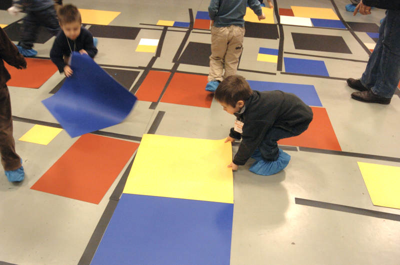 Un percorso di scoperta attiva dove i bambini sperimentano, provano, collaborano, fanno e disfano liberamente, prima curiosi di scoprire ciò che stanno per realizzare e poi sorpresi di ritrovarsi, come per magia, dentro a un quadro di Mondrian che loro stessi hanno creato.