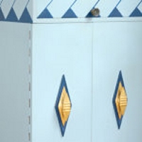 Geometrie colorate – Gli elementi che compongono la camera quali il letto, lo scaffale, la scrivania, l'armadio, il mobiletto e il comodino ricordano nelle forme e nelle decorazioni i motivi deperiani degli anni Trenta. La forma sintetica e la sequenze di triangoli dai vertici superiori saettanti, quasi frecce diagonali, colorati a tinta piatta con alternanza di azzurri chiari e scuri sono ispirati ai suoi "mobili blu". Come si apprende dai documenti, la moglie dell'artista scrive che l'arredo essenziale e lineare scelto da Russolo per il locale-studio fu, infatti, suggerita dall'amico Fortunato Depero. L'amicizia tra i due futuristi è testimoniata ampiamente da una fitta corrispondenza, conservata nel fondo presso l'Archivio del Novecento al MART di Tento e Rovereto.