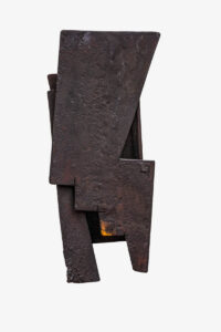 Fra le sculture esposte come Travel 1 (2019), The Poetry of Structure 2 (2020), The Poetry of Structure 3 (2020), Movimento nomade (2021), realizzate in ferro forgiato e patinato, emergono in maniera evidente il rapporto con lo spazio circostante e il dialogo instaurato con il luogo in cui sono inserite. Importante è la relazione tra pieni e vuoti dove la ricezione della luce crea interessanti giochi con le ombre e un legame di continuità fra interno e esterno, concetto ben rappresentato da Vuoto d’aria (2022) e Metis (2016).