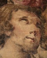 In seguito si sono effettuati vari test, su fac-simile di dipinto, per individuare un consolidante che alterasse il meno possibile la cromia originale dell'opera; si è proceduto quindi al consolidamento dell'intera superficie.