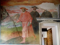 Affresco con San Carlo Borromeoprecedente, di cui gli scavi archeologici condotti sull'edificio per altro non hanno dato riscontro, l'enigma rimane irrisolto. L'approfondimento degli studi di settore potranno dare qualche risposta forse in futuro.
