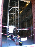 I ponteggi nella chiesa di San Carlodi Isabella Marelli, per quella storico artistica, devono ancora indicare se l'intradosso della volta dell'abside debba essere ricostruito conservando o meno la parte ottocentesca molto rovinata, e quale degli strati delle decorazioni pittoriche salvare (quelle della navata, consistono in puttini e medaglioni blu, che risalgono al 1895)".