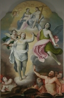 Legno, metallo e ora tela – L'ultimo intervento in ordine di tempo, eseguito tra febbraio e luglio dello scorso anno, riguarda il dipinto 'L'Angelo custode e le anime del purgatorio' attribuito a Biagio Bellotti, conservato nella penitenzieria della chiesa. Il problema principale dell'opera era la presenza di un telaio ligneo non coevo a questa, che provocandone la scorretta tensione ha portato ad un allentamento generale del supporto. La superficie pittorica presentava una spessa ridipintura probabilmente eseguita durante il precedente restauro (Eugenio Sartori 1977, riportato sul retro della tela), oltre a staccature tra preparazione e tela, polvere, ragnatele e sollevamenti di scaglie sparse sull'intera superficie. Contorna l'opera una cornice dorata coperta da una ridipintura a porporina, opera dell'ultimo restauro. Staccato il dipinto dalla cornice, sono iniziati gli studi e gli interventi veri e propri, partendo dal consolidamento della pellicola pittorica. E' stato asportato lo sporco e gli strati sovrammessi; sul retro sono state volte diverse operazioni di restauro e pulitura. L'intervento sulla cornice è consistito nella rimozione totale degli strati di finto oro, riportando alla luce lo strato di doratura in foglia.