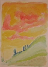 Buonconvento (Toscana)I colori come gli antichi – Le opere di recente produzione sono realizzate su carta, prevalentemente di riso giapponese e tailandese. Ma anche carta cotone e cartoncini vari. Tali creazioni si caratterizzano anche per i colori utilizzati. "La tecnica usata non è mai una sola – confessa l'artista – mi piace utilizzare acrilico, acquerello, olio, china. Questi colori li mescolo con colori estratti direttamente dalla natura. Bacche, legni, foglie, pietre, caffè… "Il giallo, per esempio lo estraggo da un determinato arbusto che ha il tronco all'interno di color ocra intenso".