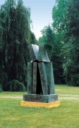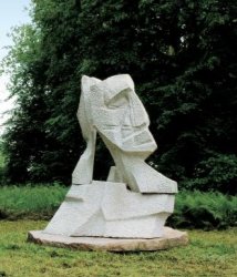 Soprattutto le sculture dei giapponesi esprimono questo carattere antiretorico, connaturato alla loro cultura. A fronte di lavori – soprattutto quelli ferrosi – portatori di un discorso spaziale astratto variabile all’infinito, si nota il riaffacciarsi del racconto e del simbolo declinati con strutture e materie differenti. Alla fine quasi del percorso si incontra Lo sguardo di Giancarlo Sangregorio, in marmo e granito, opera frutto di anni e di un montaggio di massi obliqui, profili taglienti, fondamenti instabili, sfuggente a qualsiasi veduta e interpretazione univoca.