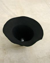 Luca Scarabelli in mostra a BarassoEntri e il benvenuto in galleria te lo dà un cappello nero, di feltro, rovesciato. Un cappello di quelli quasi a punta che se ne sta bello ritto anche grazie ad una sfera nera posata dentro. Il cappello pare dare forma alla sfera e viceversa. "Il vestito è il corpo del corpo" diceva, se non ricordo male, Erasmo. Poche opere disposte nella sala illuminata dalle belle vetrate d'inizio secolo dello Spazio12 di Barasso. "Poche opere e ben calibrate – spiega il padrone di casa Emanuele Bilora – di un artista come Luca Scarabelli che ha deciso non solo di confrontarsi con questo spazio così particolare, lontano anni luce dagli asettici white cube espositivi e dove ancora sopravvive un nastro di boiserie, ma anche di portare un'opera inedita".