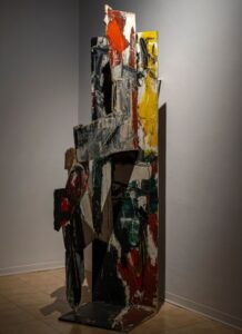 Le opere in mostra si configurano come sentinelle mute: corpi precari che si confondono con il paesaggio ma ne segnano i confini. Non monumenti celebrativi, ma dispositivi critici che denunciano il fallimento morale di un potere che trasforma la guerra in amministrazione e la distruzione in linguaggio tecnico.