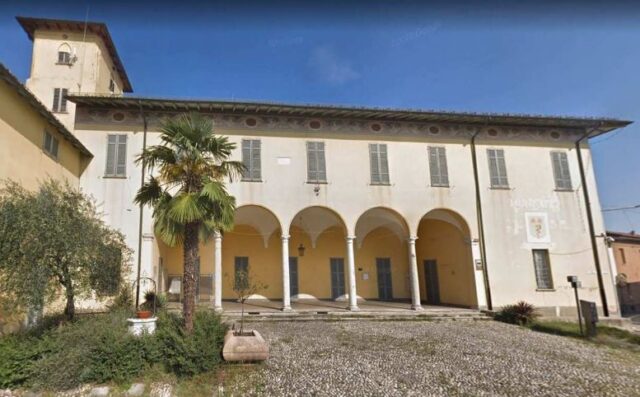 L’edificio presenta un’ordinata veste tipica delle case padronali di campagna del Milanese ed ha come segno distintivo l’elegante sequenza delle cinque arcate del portico a volta e, sotto gronda, delle finestrelle a forma ovale intervallate da decorazioni dipinte. Retaggio dell’antico castello uno stemma visconteo sistemato ora in facciata e sul fianco una torre alta a dominare le case del paese.