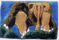 La stampa con il torchioIl bello della fantasia – 'Questo plantigrado va spianando la terra davanti a muratori e costruttori. Lo portano su un terreno accidentato, e lui lo livella con le zampe e con la proboscide'. E' lo 'spianatore', all'apparenza un comune elefante, in realtà è 10 volte più grande di questo. E ancora a raccontare la fantasia c'è la 'scimmia dell'inchiostro': 'ha gli occhi come di cornalina e pelo lustro, serico, morbido come un cuscino. Va matta per l'inchiostro di Cina. Quando uno scrive, lui siede con una mano sull'altra e le mani incrociate, aspetta che quello abbia finito, e si beve il resto dell'inchiostro'. Dalle parole di Borges ai colori di Scharff. Ma questo mondo è ricco di tanti altri protagonisti, dal 'Périto' al 'Catopleba', dal 'Cane cerbero' all' 'Ittocentauro'.
