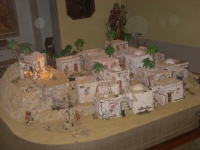 Tornano i grandi numeri – Agli occhi dei visitatori si mostra in tutta le sue caratteristiche una vera e propria città orientale con tanto di stradine tra case in sasso, squadrate e non troppo alte. Calde lucine illuminano la strada ai viandanti e agli abitanti del borgo conducendo l'occhio dell'osservatore in cima alla collina dove si trova la Sacra Famiglia. Un'opera costata circa 1500 ore di lavoro da parte del ristretto gruppo di volontari, una decina di persone che dalla fine di ottobre stanno dedicando le loro serate alla creazione del Presepe. Grandi numeri caratterizzano il lavoro anche quest'anno: 3 quintali di gesso e altrettanti di sabbia impiegati, 20 personaggi, 70 pecore, 18 case, 10 cammelli. Un'opera compiuta grazie alla collaborazione della Pro Loco di Gazzada-Schianno nella figura del Presidente Angelo Carabelli e della Parrocchia di Schianno con Don Angelo.